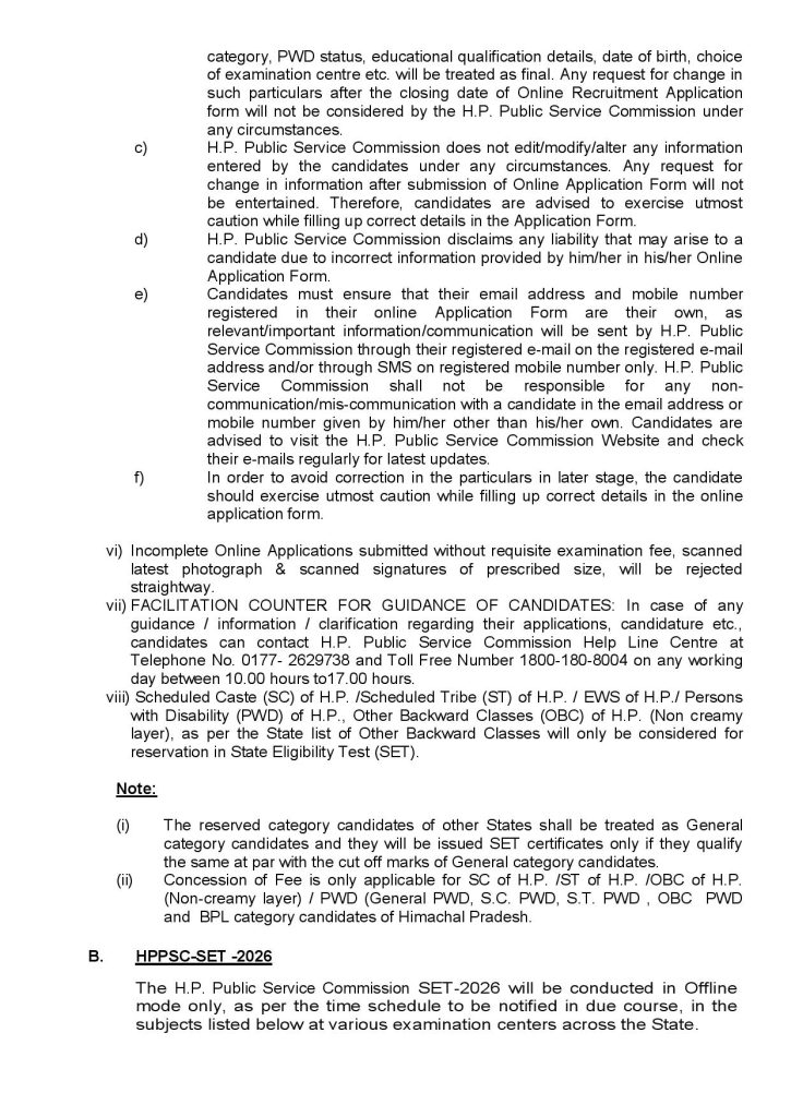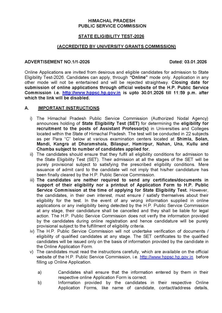 Commission i.e. http://www.hppsc.hp.gov.in is upto 30.01.2026 till 11:59 p.m. after